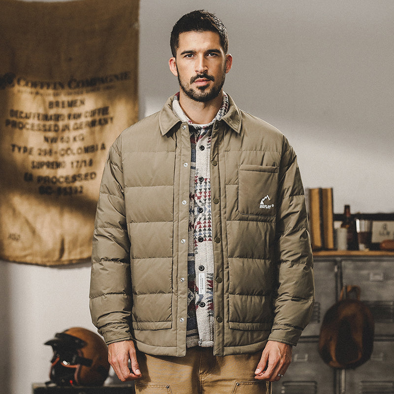 snɔoɟ uoı̣snɟ - 美式復古襯衫式羽绒服冬季新款時尚簡約輕薄保暖羽绒夾克外套 FG-346