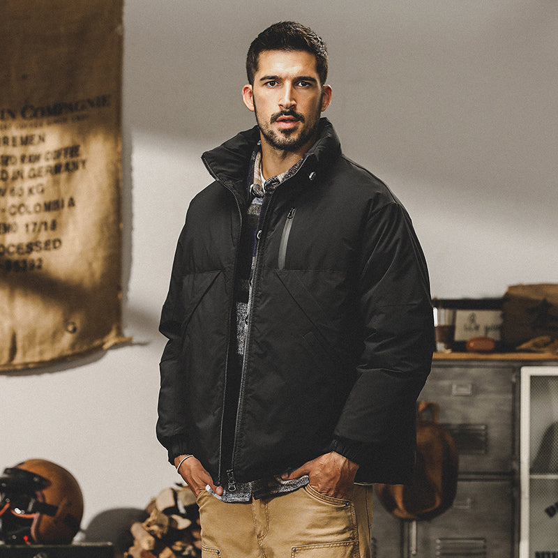 snɔoɟ uoı̣snɟ - 美式黑色短款羽绒服冬季2025新款潮牌休閒寬鬆潮流外套秋冬款 FG-369
