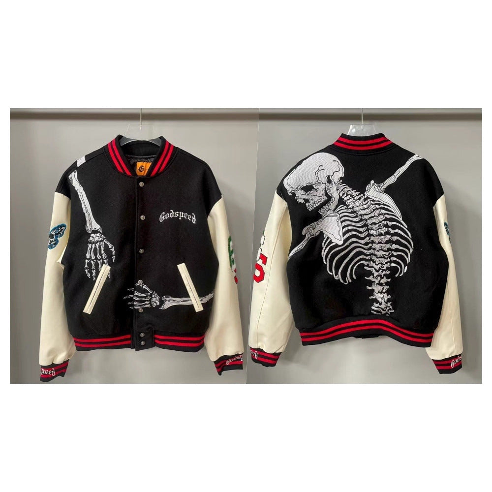 snɔoɟ uoı̣snɟ - 2025SS美式潮牌秋冬新款刺繡骷顱頭夾克棒球服男女同款 SMN-339